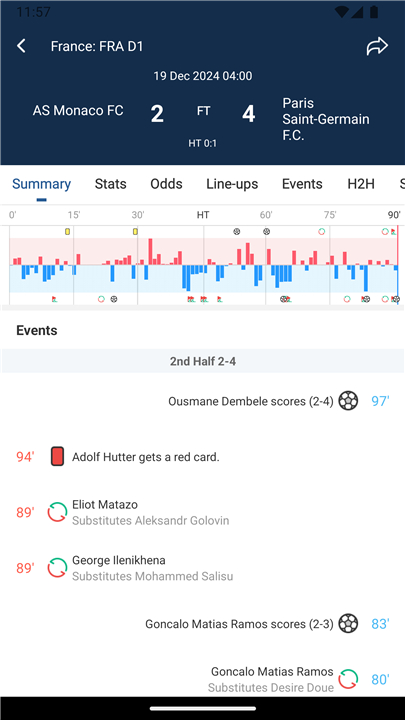 • Receive push notifications promptly alerting you to key moments such as goals, fouls, and final match results, keeping you connected and in the loop even while you’re on the move.