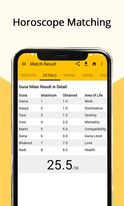 A: Absolutely. The app offers highly accurate Ashtakoota Guna Milap matching, which is a widely trusted method in Vedic astrology for checking marriage compatibility. It calculates and analyzes various factors to see how well two individuals align for a harmonious relationship.