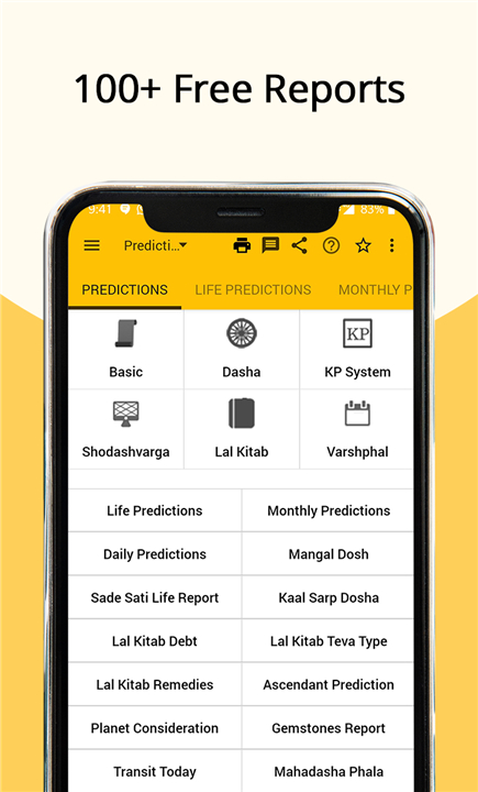 • Advanced Tools – Planet degrees, chart rotation, colored charts, multiple ayanamsa options, GPS-based Prashna Kundli.