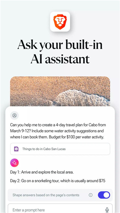 Brave Leo is Brave’s AI assistant that enhances your browsing with capabilities, such as answering queries, translating languages, and more, all without recording or sharing your personal interactions.
