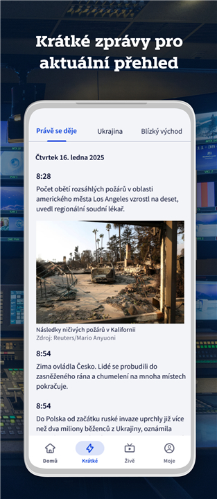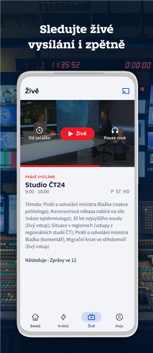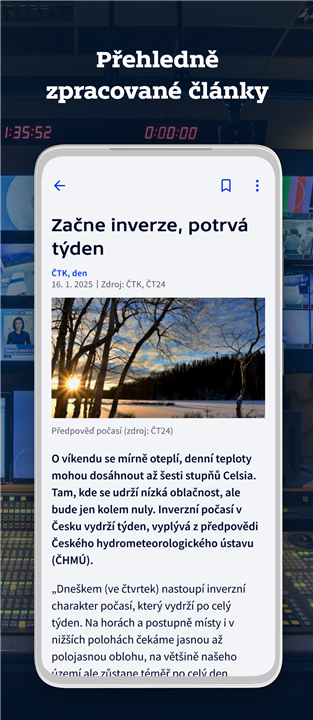 Access live ČT24 broadcasts, read current articles, watch videos, get quick news updates, customize alerts, and share or save content for a personalized news experience.