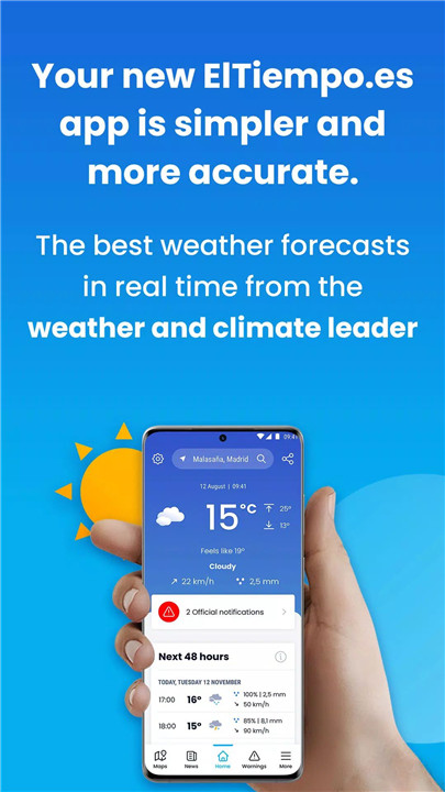 The app provides highly accurate weather forecasts with up-to-the-minute data sourced from trusted meteorological organizations, including AEMET.