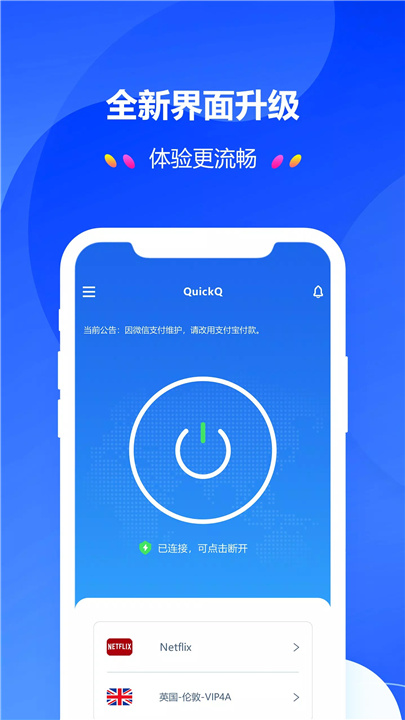 - 只需轻轻一按,便可实现一键连接,智能推荐最佳线路。