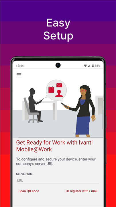 • Ivanti Mobile@Work connects your Android or WearOS device directly to your organization’s network, giving you instant, secure access to email, calendars, contacts, and other essential business tools.