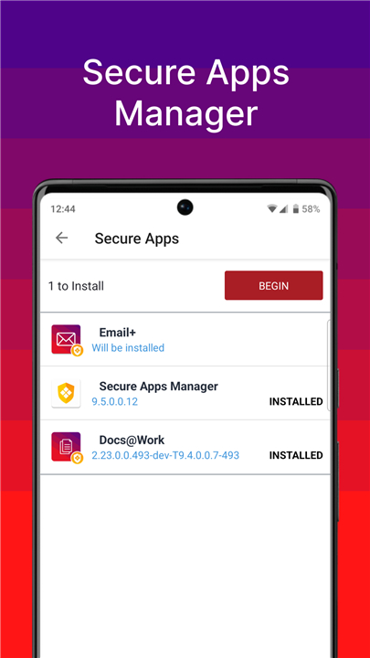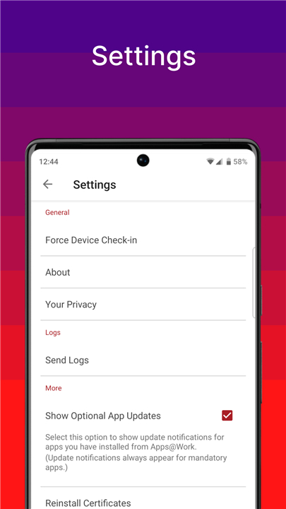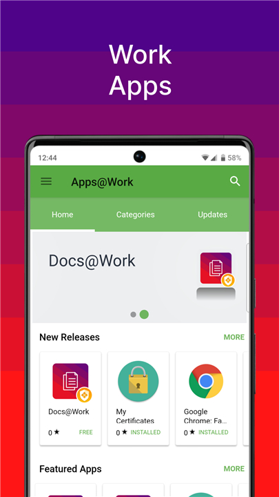 • Simple App Management: Discover and install work-related apps anytime, anywhere.
