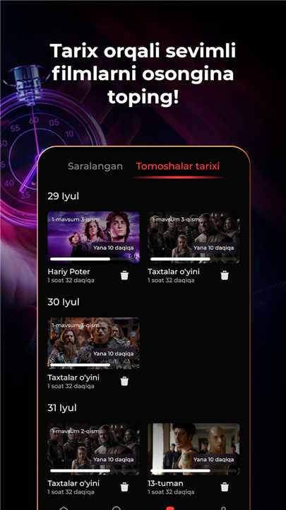 • Users can stream high-quality content in Uzbek, Russian, and English, catering to diverse viewing preferences directly on their screens, ensuring a rich entertainment experience for a broad audience.