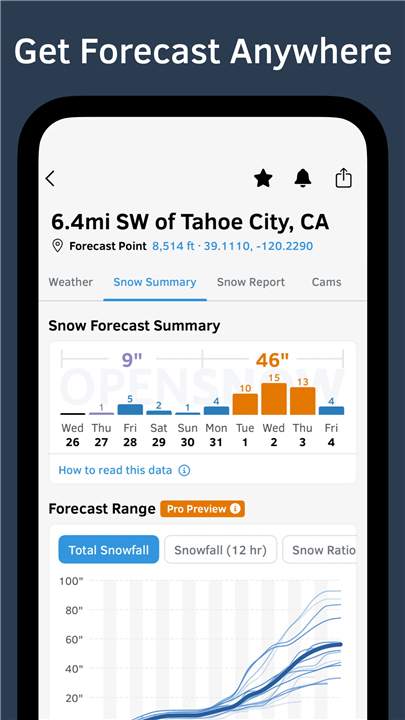 Radar, Lightning, Snow Report Download the latest version of OpenSnow: Weather Forecast to enjoy new features and updates immediately!