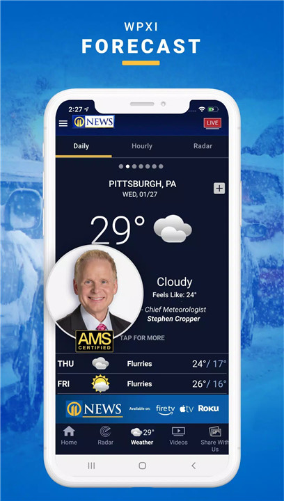 Stay ahead of the weather with WPXI Channel 11’s advanced StormTracker Doppler Radar and detailed 5-day forecast. The app provides real-time weather information that helps you plan your day and stay safe from severe conditions.
