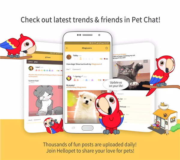 Hellopet connects you with a lively community of pet lovers. In the Pet Chat feature, users can share funny moments, ask questions about the app, and engage with friends. The Pet Chat Gallery mode showcases the best snaps of pets and offers a space for users to share fan art, links, and favorite moments. It’s the perfect place to connect, share, and find new friends.