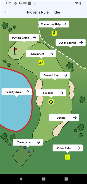 • Step-by-step guidance to handle common incidents, such as taking relief or playing from a penalty area.