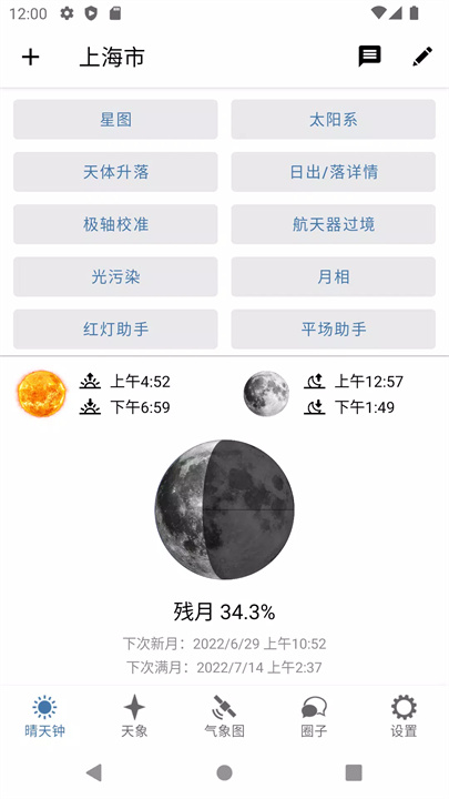 2、月升与月落:提供详细的月相信息,适合月亮观测和摄影。