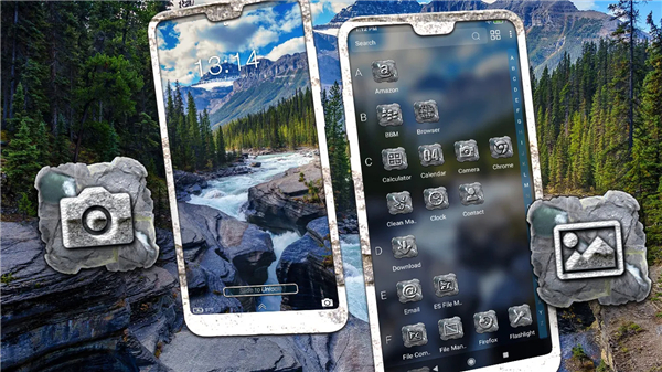 The Mountain River Theme offers a comprehensive makeover for your smartphone or tablet, ensuring every aspect of your interface is reimagined for beauty and consistency.
