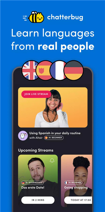 Don't miss out on the opportunity to learn Spanish, German, French, or English with Chatterbug's innovative and immersive method. Download the app now and experience it!