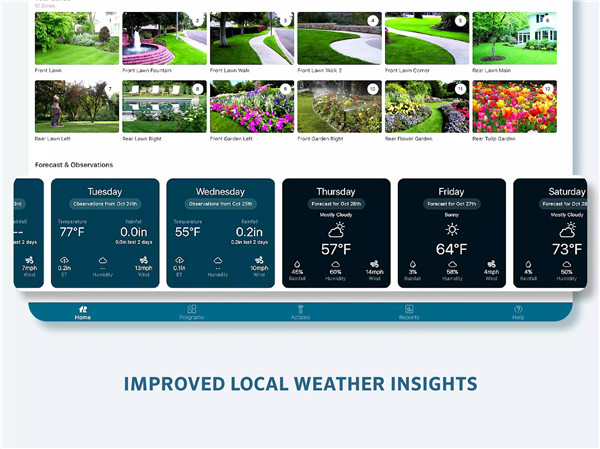 Predictive Watering™ analyses weather forecasts — including rainfall, temperature, and humidity — to automatically adjust your irrigation schedule for the best watering performance.