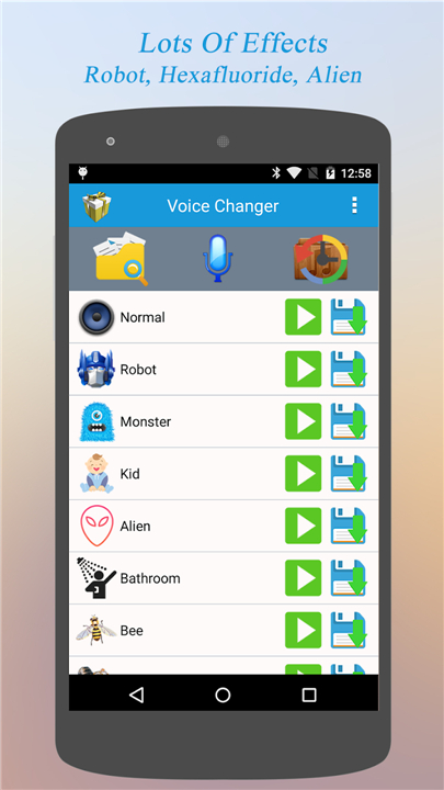 Q: What kind of voice effects does Voice Changer offer?