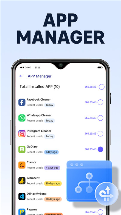 The Smart App Manager in Easily Cleaner is an essential feature that helps you evaluate and optimize your applications. It gives you complete oversight of your Android device, showing which apps are running in the background, which ones consume the most storage, and which can be safely removed. This functionality not only frees up space but also enhances your device's overall performance.