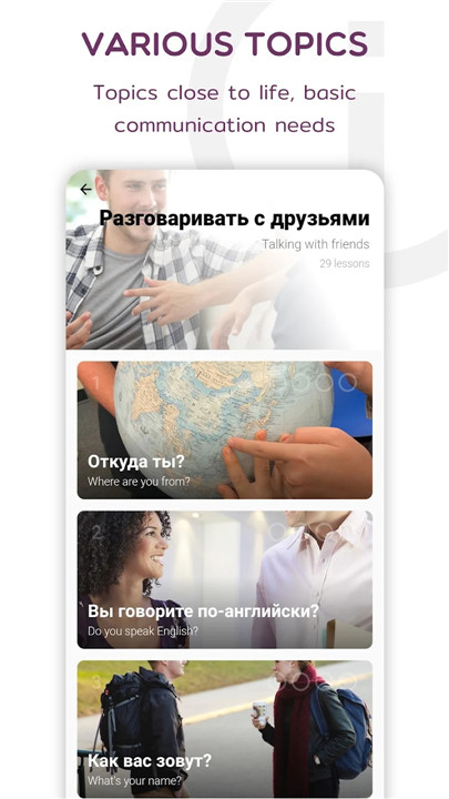 Are you eager to enhance your Russian speaking and listening abilities? Look no further than Russian Listening & Speaking, the premier app designed for immersive video conversations. Whether you're just starting out or already have some experience, our captivating curriculum and interactive features will empower you to master the language with ease.