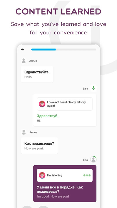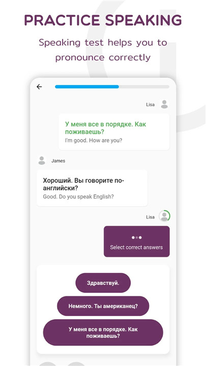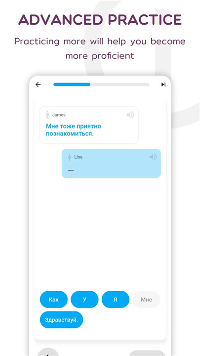 A: The app includes video lessons featuring native Russian speakers, allowing you to engage in realistic conversations. This dialogue-based learning approach immerses you in practical scenarios for better speaking practice.