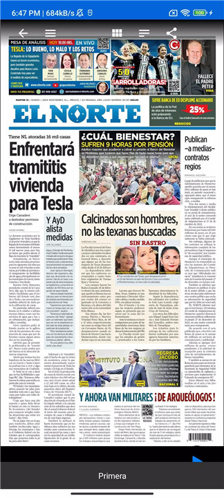 Access all EL NORTE content easily from one app. Browse articles, slideshows, and editorials, as well as the printed edition in digital format updated daily from 5:00 am. Stay current on a wide range of topics, including breaking news, special supplements, and more.