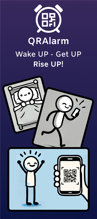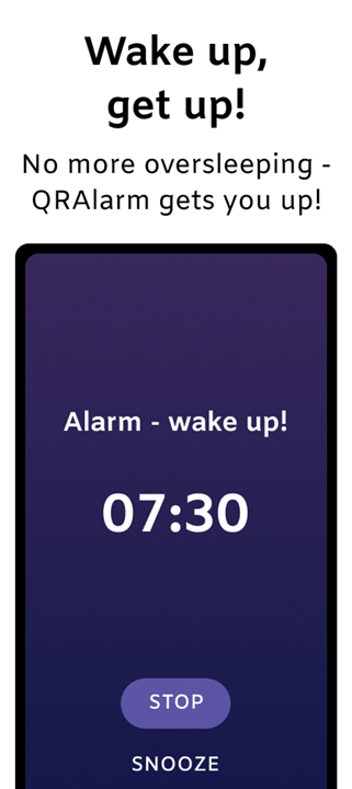 • Download QRAlarm, set up your custom alarm missions, and discover how easy it can be to wake up on time every morning.
