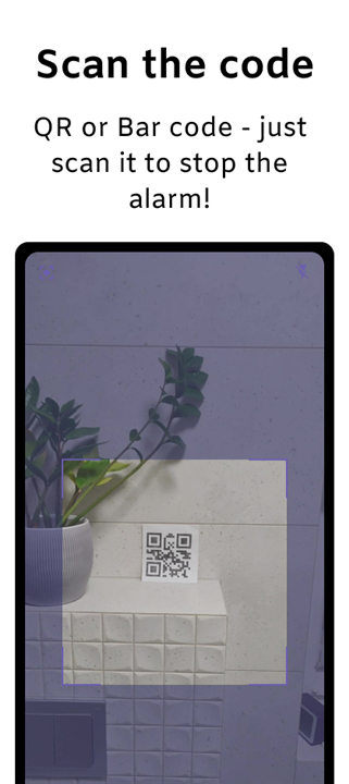 A: When your alarm goes off, it won’t stop ringing until you scan the specific QR or barcode you’ve chosen during setup. You can print or place that code somewhere like your bathroom mirror, kitchen counter, or another room—basically anywhere that forces you to move.