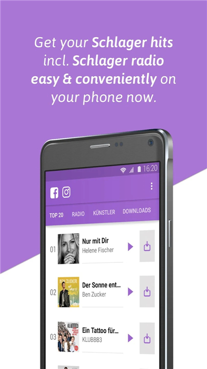 Are you a German Schlager fan? Schlager music on the radio or for download Download the latest version of Schlager Charts & Radio - Germ to enjoy new features and updates immediately!