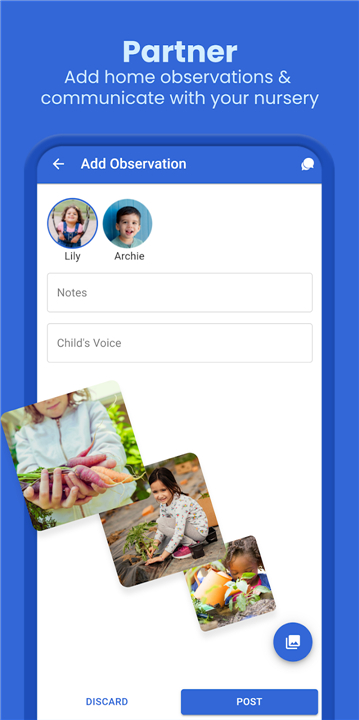 • Your childcare provider uploads vibrant photos and detailed descriptions of your child's daily activities, learning adventures, and developmental milestones.