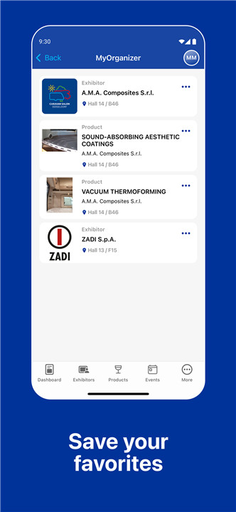 • Instant exhibitor details at your fingertips by simply tapping a stand