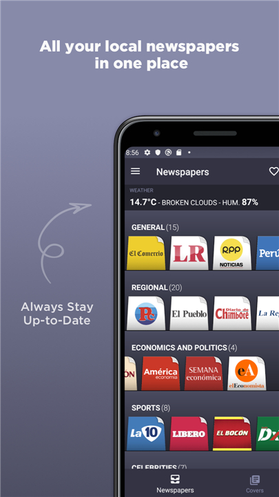 + Access vital local news from regional publications such as El Pueblo or Diario de Chimbote, found conveniently in the "Regional" category.