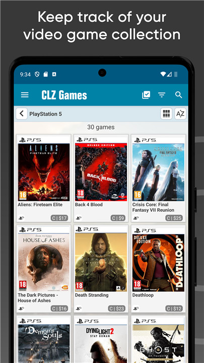 Effortlessly organize your video game collection with our app. Simply scan the barcodes of your games or search through our extensive CLZ Core online database by platform and title. You'll receive automatic game details, cover art, and current market values sourced from PriceCharting.