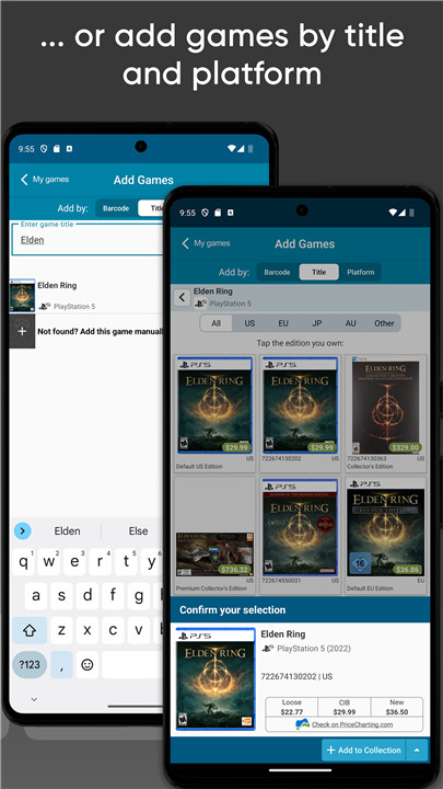 2. Search for games by title and platform, then choose the specific edition you own.