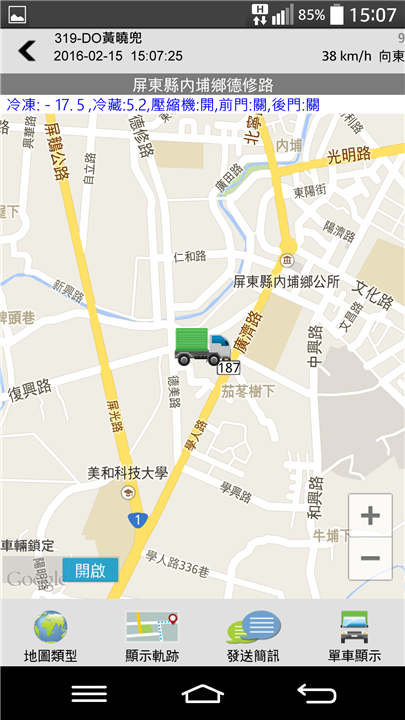 • Displays each vehicle’s position and operational condition on an interactive map.