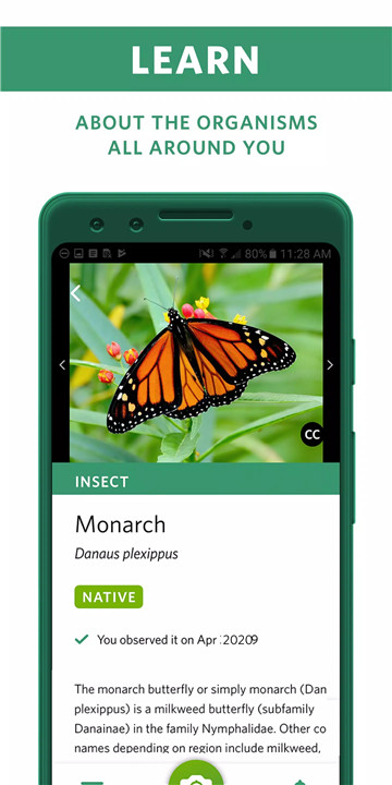 Simply point the Seek Camera at living things, and let the app do the rest. Using image recognition technology and drawing from millions of wildlife observations on iNaturalist, Seek provides you with lists of commonly recorded insects, birds, plants, amphibians, and more in your area. Learn about the organisms you encounter and deepen your understanding of the natural world.