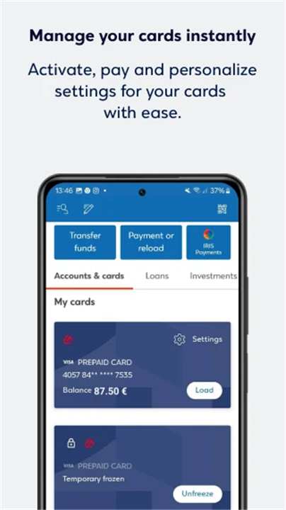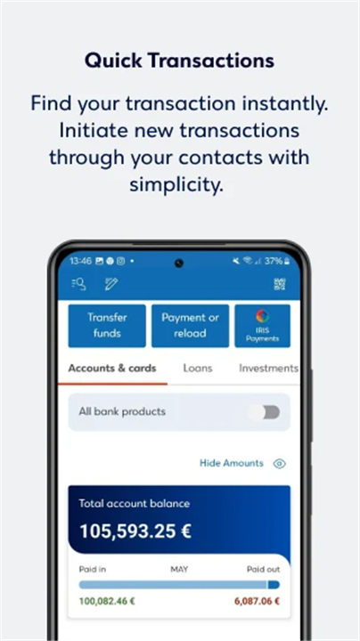 • Use both your phone’s saved contacts and the ones stored in your e‑Banking profile to complete transactions faster.
