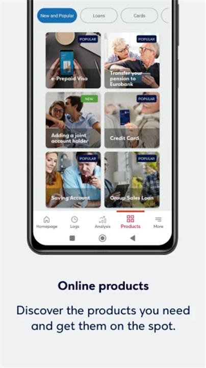 A: Definitely. From the main dashboard, you can swipe directly to see loans, investments, insurance products, or other services you have with Eurobank. It’s a smooth, one‑gesture movement that saves you time.