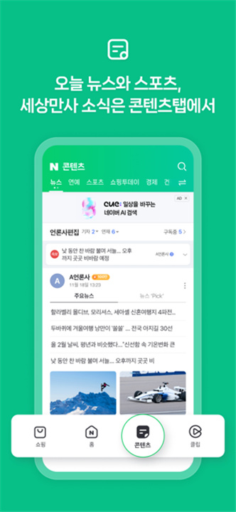 首先,NAVER下载精心为你打造了四大空间,以满足各类内容需求。每日必看的信息汇聚于“主页”,短小精悍的短篇则藏身于“剪辑”,新闻报道与各类可读性强的文章皆收录于“内容”,若你渴望根据自身喜好实现智能化购物,那么“购物”选项卡绝对是你的不二之选。