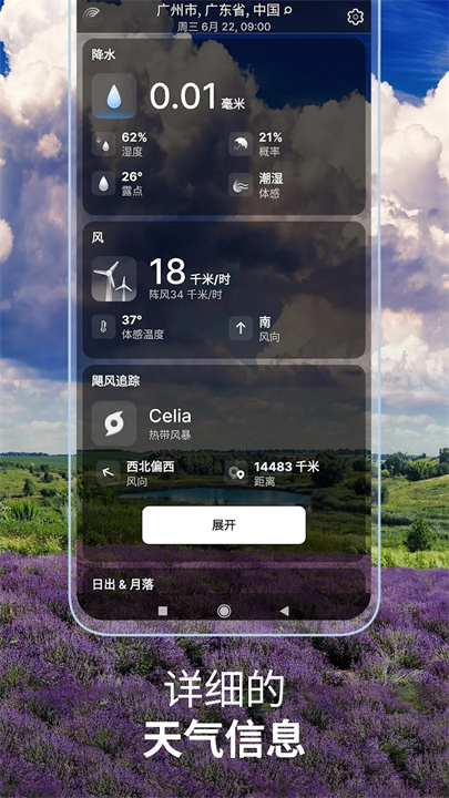 气象数据:了解风速、风向、气压、降水信息,以及日出日落时间。