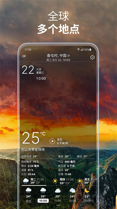 实时天气°是一款提供全球各地天气信息的应用,致力于为用户提供精准、实时的气象数据。通过简单直观的界面,用户可以快速获取当前气温、湿度、风速及未来几天的天气预报。应用还支持个性化设置,让用户根据自己的位置和需求接收天气警报和提醒。