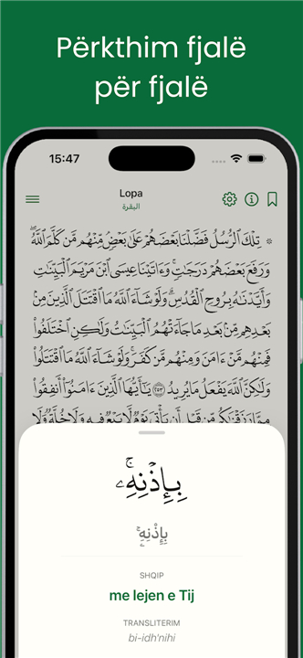 • This dedicated application allows users to engage deeply with the Holy Quran, providing not only a complete translation into the Albanian language but, uniquely, a word-for-word rendition.
