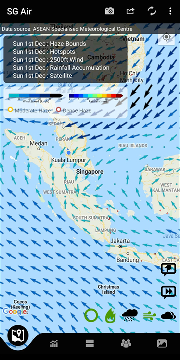 • Haze Map that displays wind direction, hotspot locations, and haze coverage, updated daily in the evening.