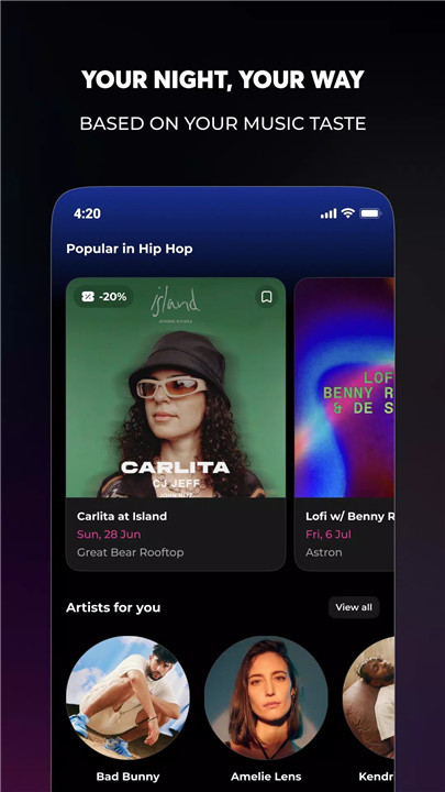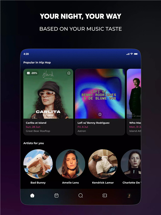 Mood isn’t just about finding places; it’s about finding the right places for you. The app analyzes your music preferences and tailors event recommendations based on your unique style. If you're into techno, indie rock, or hip-hop, Mood will make sure you're always in the right spot. From underground raves to pop-up live gigs, the app adapts to your tastes, ensuring your nights are never dull.