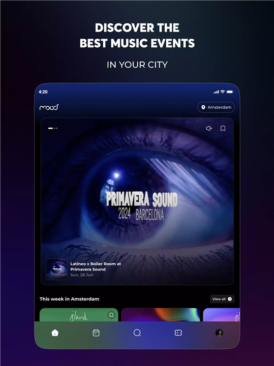Mood is designed with intuitive navigation in mind. Exploring your city's nightlife has never been easier. Whether you’re planning ahead for a weekend out or searching for something spontaneous, the app makes discovering new events, parties, and venues a breeze. The user-friendly interface ensures you can find what you’re looking for quickly—because your night should be about enjoying music, not hunting for it.