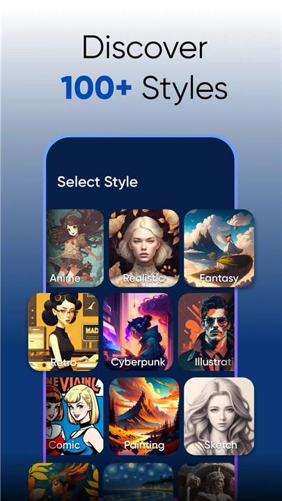 Simply input your prompt and choose from a wide array of art styles—from realistic to anime, oil paintings to pixel art, cyberpunk to vintage. Artify transforms concepts into visual masterpieces instantly.
