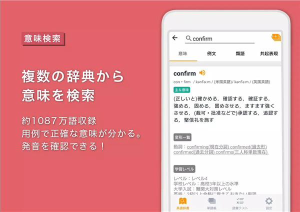 这意味着您将拥有超越千万级别的丰富词汇数据库及整整九百多万条例句资源,无论是日英互译还是英日互译,都能轻松应对。weblio英語辞書 アプリ,这款全球顶级的免费英语词典应用程序,由我们专业团队倾心打造,承诺为您呈现最贴心、最实用的英语学习工具。