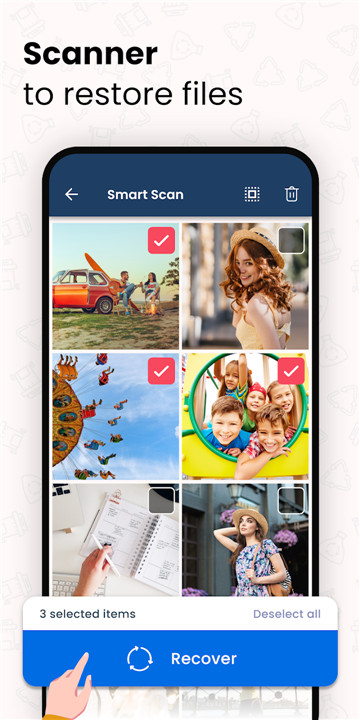 Discover a photo restoration application designed to recover images that have been permanently deleted from your gallery. This image recovery tool allows you to restore lost pictures effortlessly. With Android data recovery capabilities, you can retrieve photos that were recently removed. Utilize this data recovery app to bring back your cherished old images. Experience deleted file recovery through our specialized image restoration application. Enjoy the benefits of a free deleted photo recovery app to restore your images. Additionally, a video recovery application is available for retrieving lost files.
