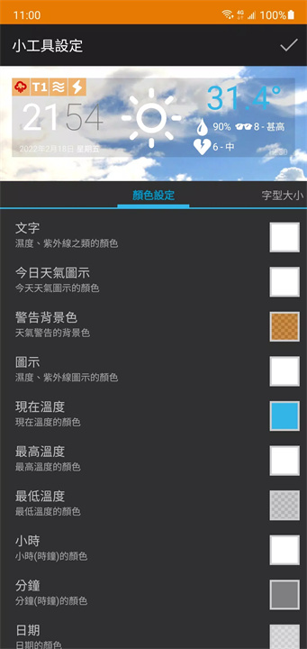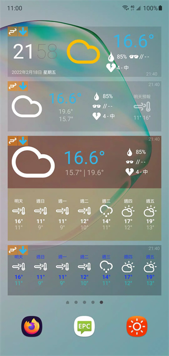 便捷通用小工具支持:用户可以自定义小工具的显示方式和颜色,随时查看天气变化。