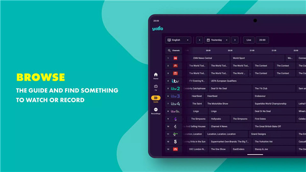 yallo TV can be accessed through a web browser and via the app on smartphones, tablets, and compatible TV devices.