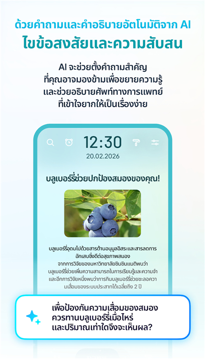 A: The Smart Health AI acts as your very own personal health tutor that is available at any time to simplify complex medical terminology. It is designed to lead deep-dive discussions on various wellness topics and offer personalized consultations whenever you have a specific question that needs a clear, expert-backed answer.
