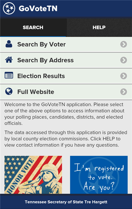 Find your polling place, candidates, and more for upcoming Tennessee elections. Download the latest version of GoVoteTN to enjoy new features and updates immediately!