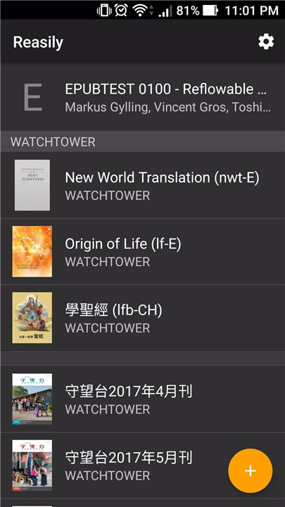 Adding your books is simple—tap the "+" button to import EPUB files into the app. If your books are organized into folders, you can add those folders via the drawer menu, and Reasily will automatically list the files for you.